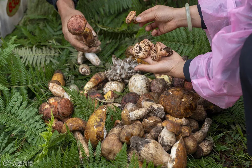 6月30日,云南省大理白族自治州洱源县三营镇士登村村民挑选牛肝菌。新华社发(罗新才 摄)