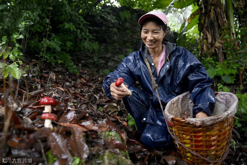 7月2日,云南省大理白族自治州南涧彝族自治县公郎镇村民在采摘大红菌。新华社发(适志宏 摄)