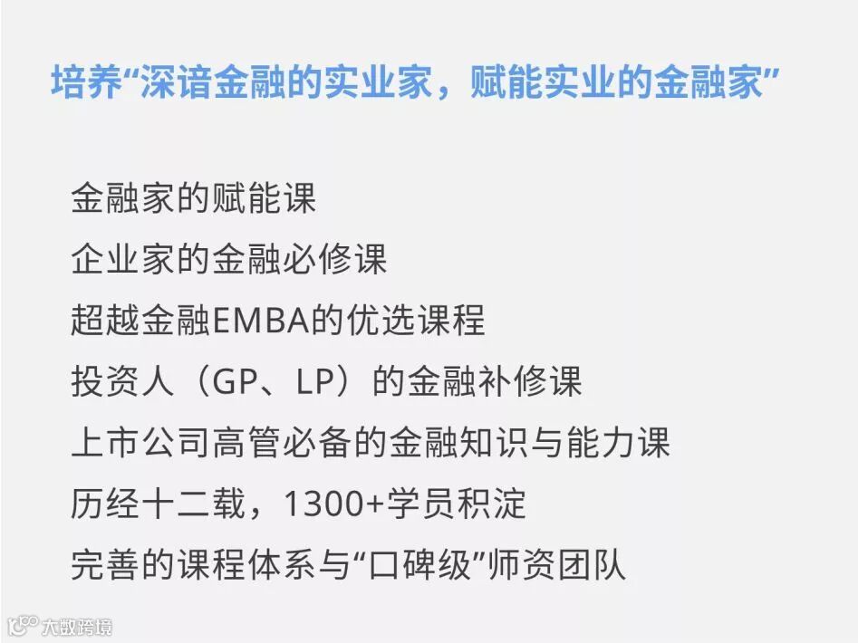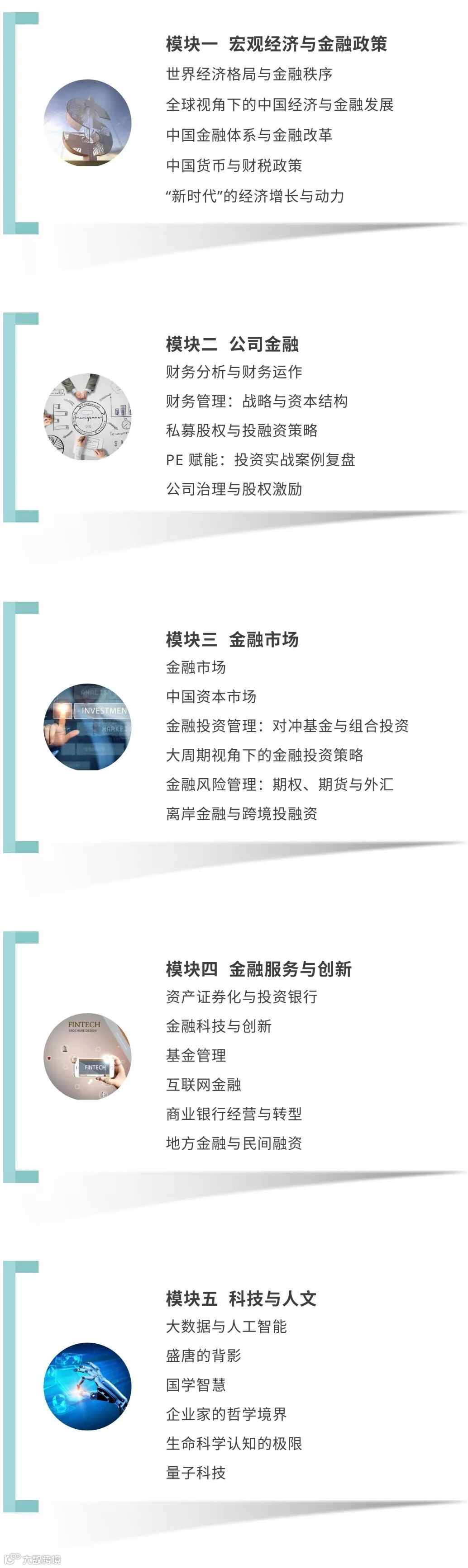 本课程根据金融EMBA的核心课程并结合企业金融实践与金融市场的实际运行而精心设计,兼顾理论、前瞻、实务、权威的原则,具体模块如下: