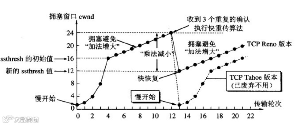 Reno在收到3个duplicate ACK时就开启重传,而不用等到RTO超时。拥塞发生时:
