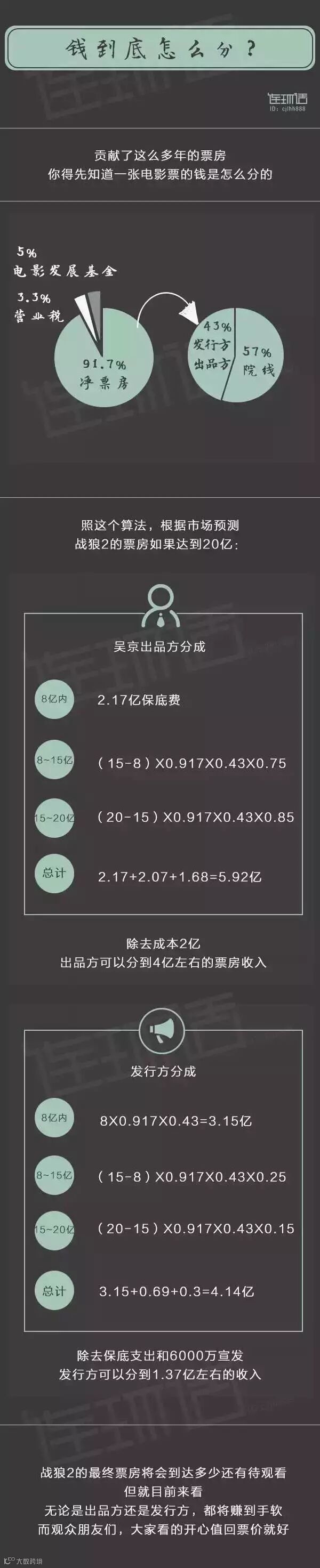 一图看懂吴京能靠火了的《战狼2》赚多少钱?