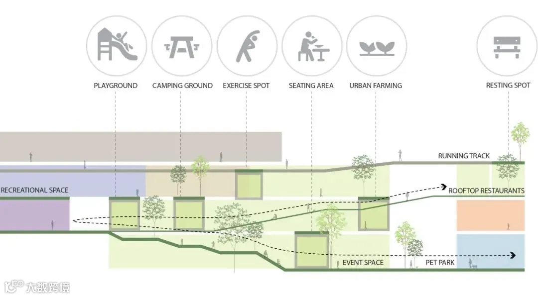 在景观设计上,Central Westville 将绿色生态融入其核心,打造了一系列室外休闲空间,如屋顶花园和户外跑道,旨在鼓励健康生活方式并提高城市生物多样性。这些绿色空间不仅为顾客提供了一个放松和社交的场所,也有助于改善城市环境,减少城市热岛效应。