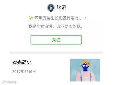 另外,据媒体报道,千万粉丝的公众号咪蒙被禁言,禁言原因疑似与昨天发布的《嫖娼简史》文章有关,这似乎也预示微信公众号环境整顿也不远了。