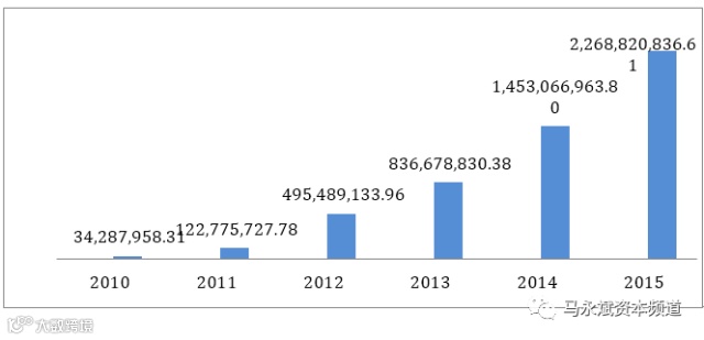 需要注意的是,这种直线摊销法的模式,对资金流的要求非常噶,需要不断加入资金投入,每年的版权投入要比以往年度大,这样可以把成本压力往后推。一旦资金跟不上,后期的成本摊销压力将会剧增。图5-9所示的是2010年至2015年期间乐视网摊销费用,基本上每年都在巨额增长。在乐视网最新公布的上半年年报中,仅2016年上半年的版权摊销费就多达31亿元,这个数字比2015年一年的版权摊销费还要高出接近10亿元。可以预测到对于乐视来说,未来这一版权摊销成本将会越来越大,而一旦资金链发生断裂,后果将不可想象。