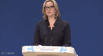 接下来,从特蕾莎·梅的队伍中,突然跳出来位新人——Amber Rudd,这位女士也是新上任不久的英国内政部部长。在这第一次的执政公开演中,Amber Rudd表现出的凶残程度简直是比特蕾莎·梅有过之而无不及:
