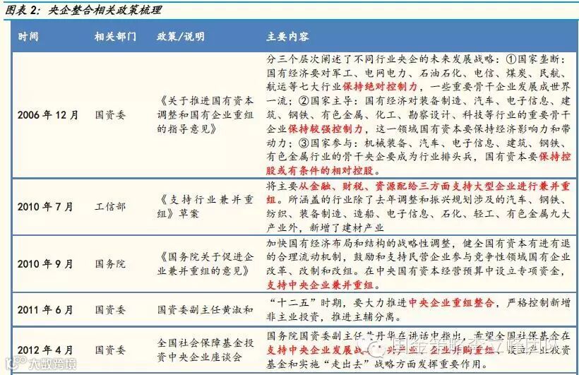 五、通过对央企合并相关政策的梳理,我们基本可以看出央企改革合并并非阶段性炒作,而是规划由来已久: