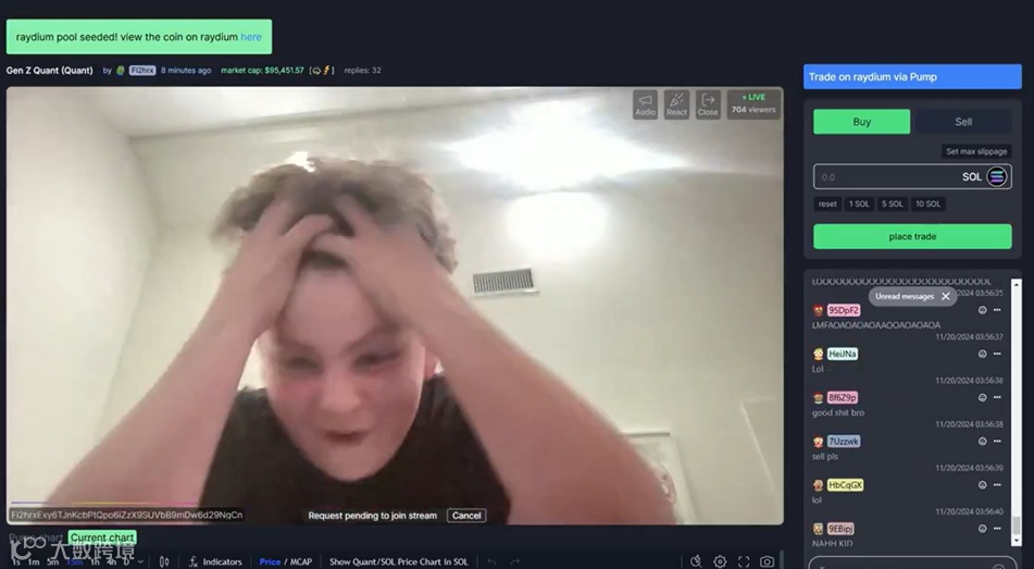 起初,他在直播平台上通过Pump.fun发行了Quant币。