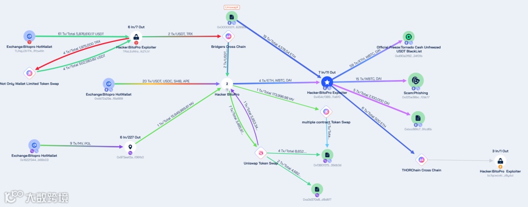6月2日,加密交易所BitoPro发布公告确认被攻击,在其对钱包升级系统与加密资产转移期间,其热钱包遭遇黑客攻击,多个链上热钱包遭到攻击,损失约1150美元。链析安全团队对该事件和资金流向进行了分析,如下:
