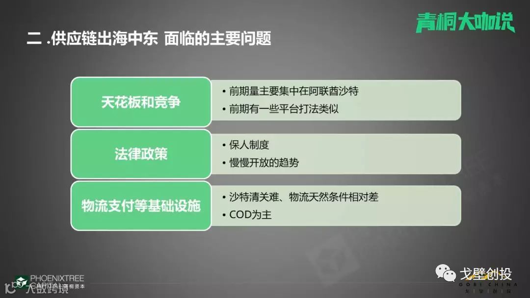 5月15日,青桐资本邀请戈壁创投投资总监涂知悦,分享了《中东&非洲,中国供应链出海新机遇》。以下为涂知悦在“青桐大咖说”的分享实录: