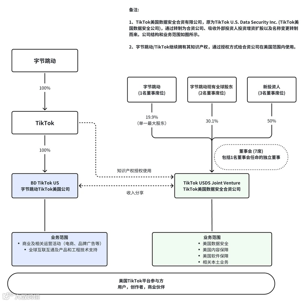 TikTok与字节跳动将继续主导电商、广告及市场运营业务,而新合资公司则全面负责数据与内容安全相关职能。此举旨在提升透明度与合规性,增强美国监管与用户信任。