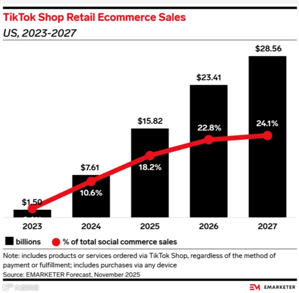 据eMarketer最新预测,到2025年,TikTok Shop在美国的销售额有望达到158.2亿美元,显示出其在社交电商领域的强劲增长潜力。