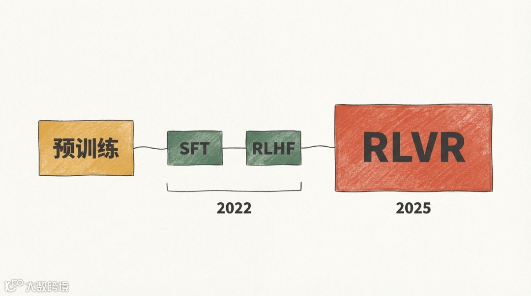 而到了 2025 年,可验证奖励的强化学习(Reinforcement Learning from Verifiable Rewards, RLVR)正式成为这条流水线上的新主力环节。