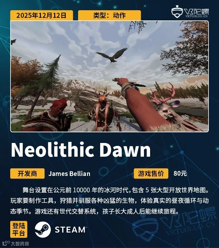 VR游戏周报·第174期,统计12月11日~12月18日期间上线的VR游戏,新作介绍共计12款,后文按照发售时间排序。截至2025年12月18日,各主要VR平台的内容数量如下: