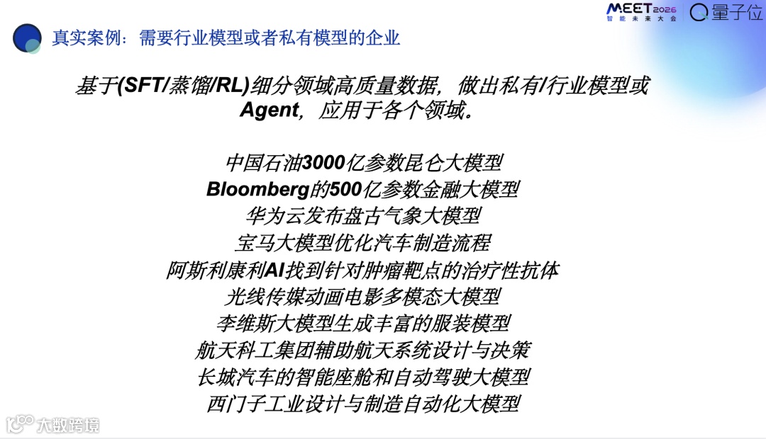 有三类企业需要行业模型或私有模型:传统大型企业、拥有海量数据的中小型企业,以及致力于颠覆行业的新兴公司。