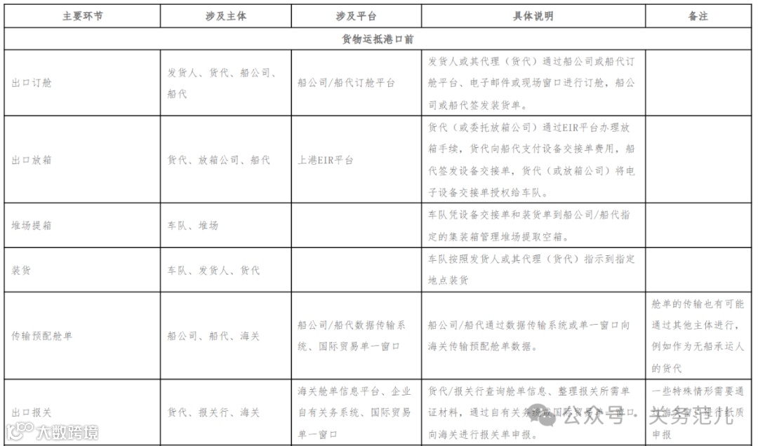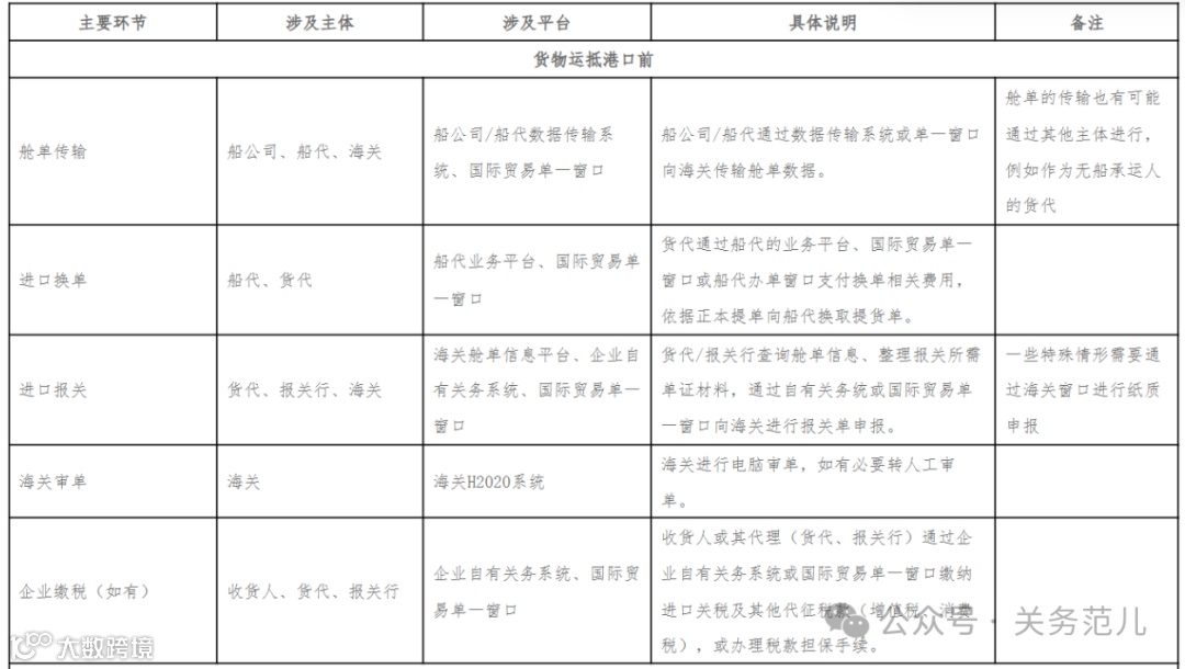 流程分为三个阶段:1)货物运抵港口前;2)货物运抵港口后;3)海关放行货物后。