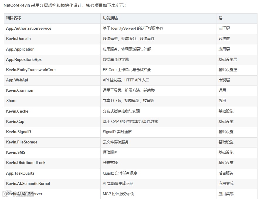 NetCoreKevin 是一个基于 .NET 打造的现代化 SaaS 企业级前后端分离架构解决方案,面向 AI 智能体与智能应用场景,以“可扩展、可拆分、可复用”为核心设计理念,帮助企业快速构建下一代智能系统。