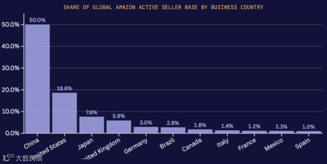 2025年中国卖家占亚马逊全球活跃卖家超50%,在美站TOP卖家占比突破50%。新注册中,中国商家占比达47%-68%。