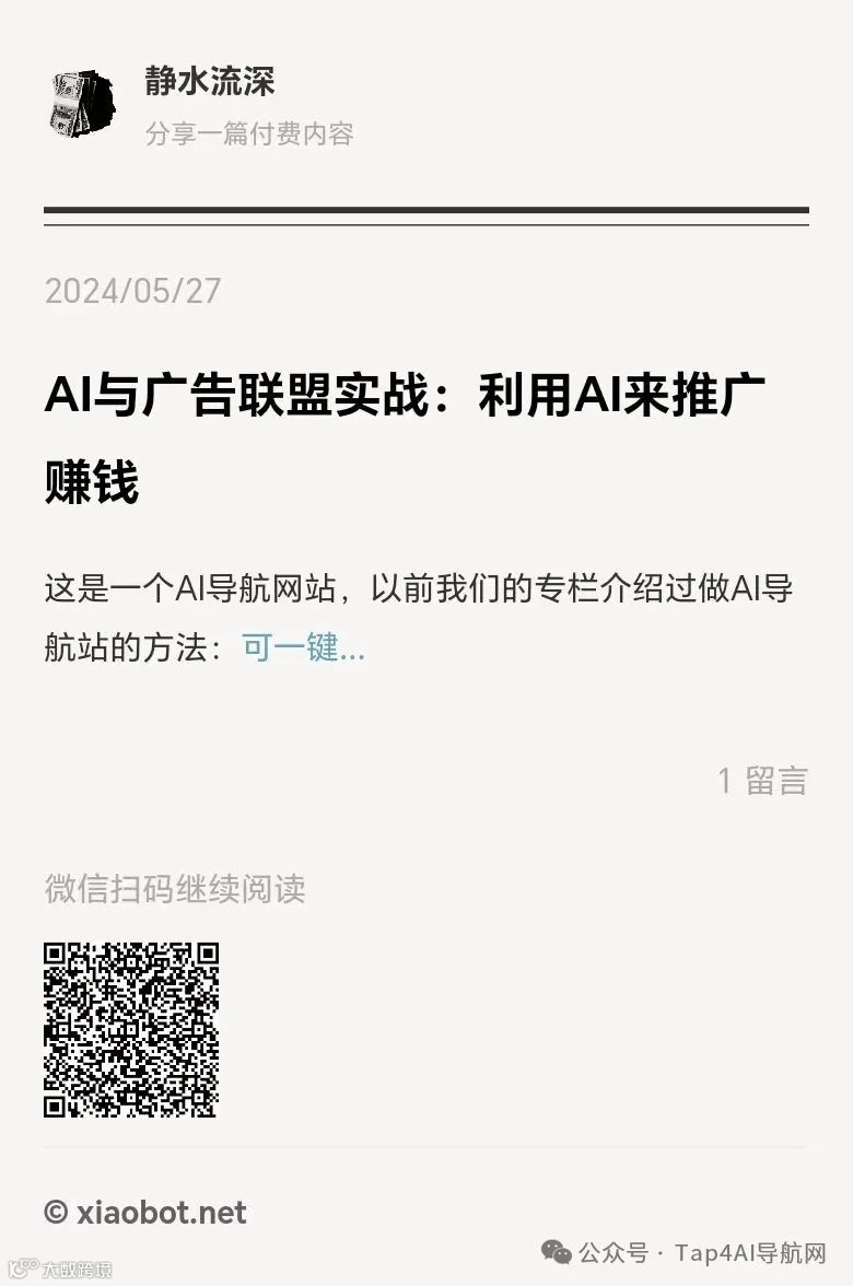 如何用Tap4AI导航站项目快速赚到出海第一桶金,推荐这篇只需10块钱而且还限免的小报童课程。