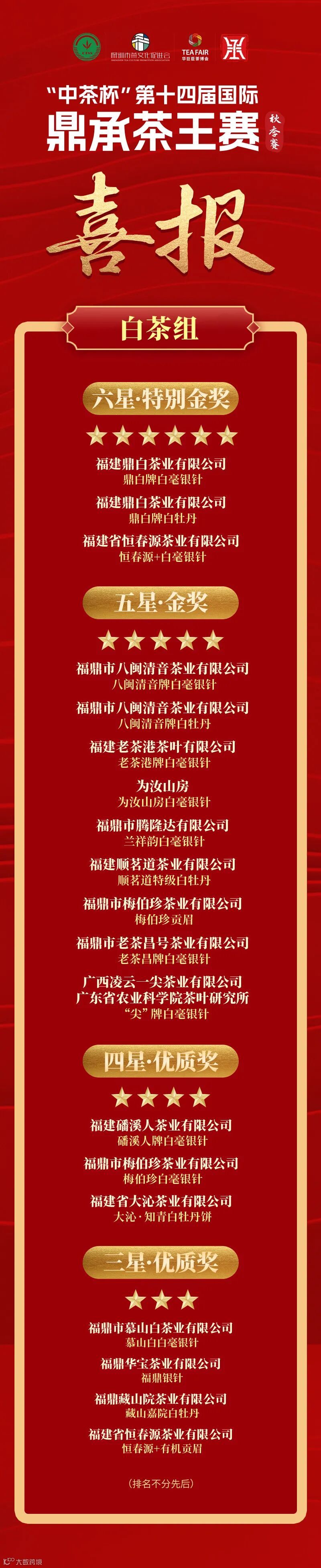 至此,“中茶杯”第十四届国际鼎承茶王赛·秋季赛审评环节圆满收官!颁奖典礼将于12月12日在2024中国(深圳)国际秋季茶产业博览会现场举办,邀您共同见证“茶王荣耀”加冕时刻!