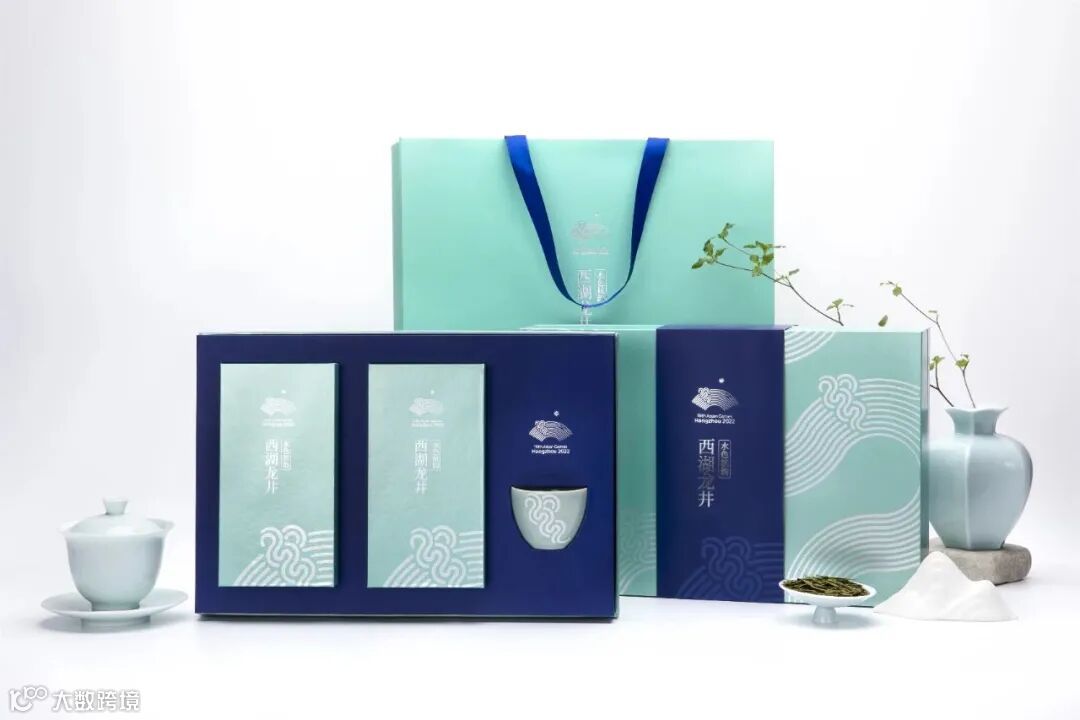 品鉴会产品:亚运水色杭韵西湖龙井、潮涌之光老白盒、杭三茗彩罐Mix组合装、杭韵龙井茶单泡装礼盒(绿)等