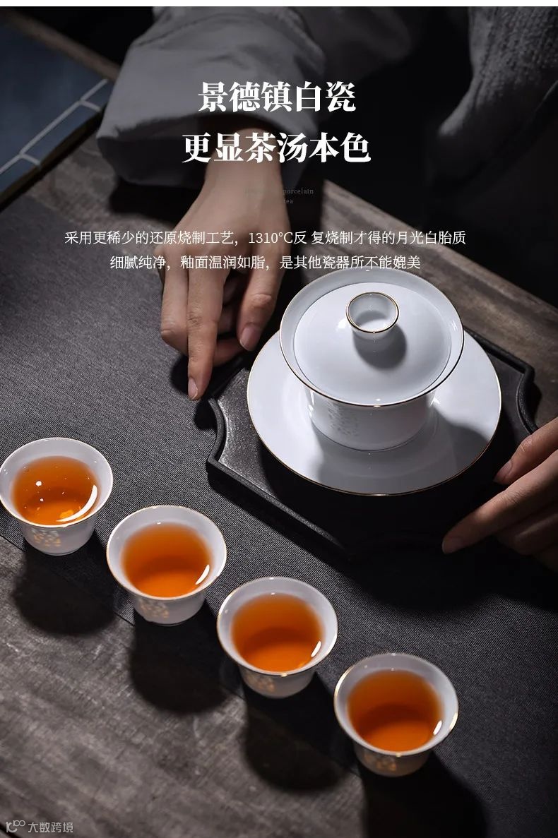 陶瓷选用景德镇高温白瓷,采用更稀少的还原烧制工艺,1310℃反复烧制才得的月光白胎质,细腻纯净,釉面温润如脂,是其他瓷器所不能媲美的。