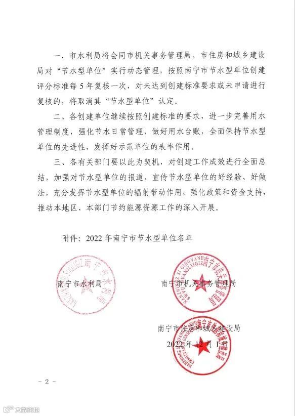 于2022年8月我司中标南宁市市直机关和市直事业单位节水型单位建设项目,创亿宝能凭借着强劲的技术优势,丰富的节水建设经验和专业的技术服务优势,助广西南宁市138家市直机关和市直事业单位成功创建节水型单位,并获得相关部门和社会的肯定与支持。