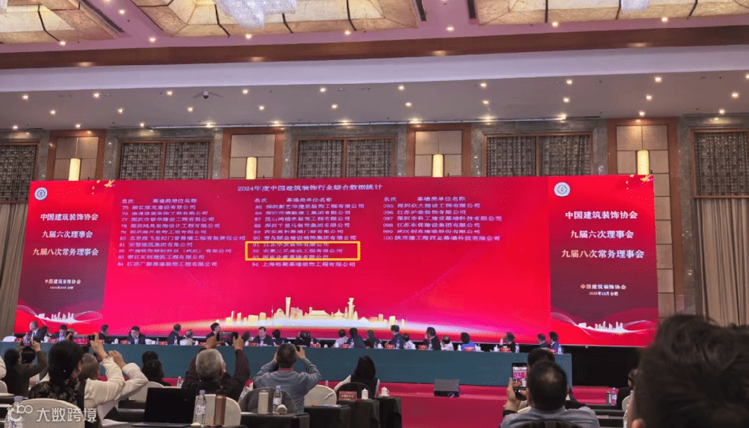 据悉,“中国建筑装饰行业综合数据统计工作”由中国建筑装饰协会组织,该评选旨在全面反映企业的生产经营情况和综合实力,根据企业营业收入等财务指标、质量技术指标,以及对企业荣誉资质、重大工程、安全质量、科技进步、社会责任等各方面进行严格甄选。