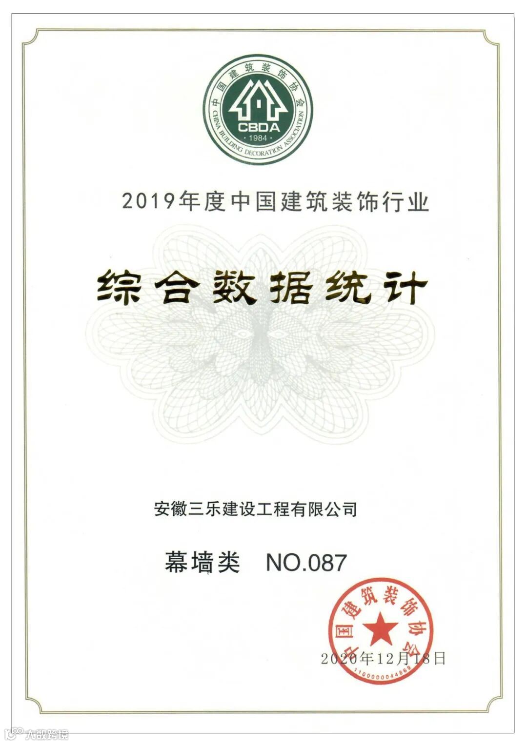 荣膺中国建筑装饰行业百强榜(幕墙类:87名)