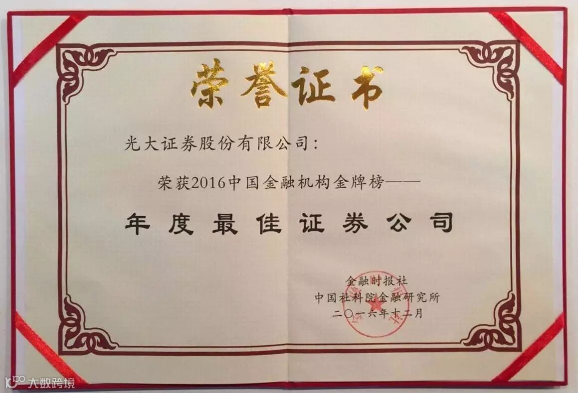 该奖项由中国人民银行主管的《金融时报》社主办,联合中国社科院金融研究所共同举行,自2008年以来已连续举办八届。目前,“金龙奖”榜单评选已成为金融行业最具权威、认知度最高的金融评选活动之一。2015年,评选首次对证券行业单设奖项,光大证券即独获此项大奖。2016年,公司凭借着良好的综合业绩指标,再次获评“年度最佳证券公司”这一最具含金量的行业年度大奖,是评委会对公司在企业治理、金融创新及市场竞争力等方面的充分肯定,同时也是监管机构认可、客户信赖和行业尊重的最佳体现。