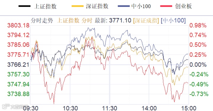 8月21日上证综指涨跌幅为0.13%,收盘价为3771.10点,成交额为9977.42亿元。深证成指涨跌幅为-0.06%,收盘价为11919.76点,成交额为14263.15亿元。两市成交额为24240.57亿元,较上个交易日变动幅度为0.66%。沪深300涨跌幅为0.39%,创业板指涨跌幅为-0.47%,中证1000涨跌幅为-0.71%。