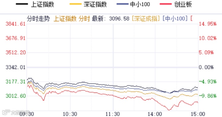 2025.4.7,市场全天低开低走,三大指数集体下挫,创业板指跌12.5%,创史上最大单日跌幅,沪指失守3100点,全市场超5200只个股下跌,逾2900只个股跌停。沪深两市全天成交额1.59万亿,较上个交易日放量4502亿。板块方面,农业等少数板块上涨,电池、消费电子、计算机设备、智谱AI等板块跌幅居前。截至收盘,沪指跌7.34%,深成指跌9.66%,创业板指跌12.5%。