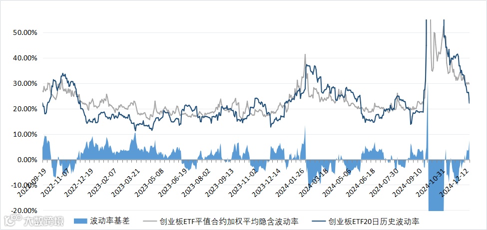 / 创业板ETF期权隐波率29.68%(上市以来分位数87 30%),期权隐含波动率下降,隐波与历波正价差走扩;深证100ETF期权隐波率24.51%(上市以来分位数87.30%),期权隐含波动率下降,隐波与历波正价差收敛。