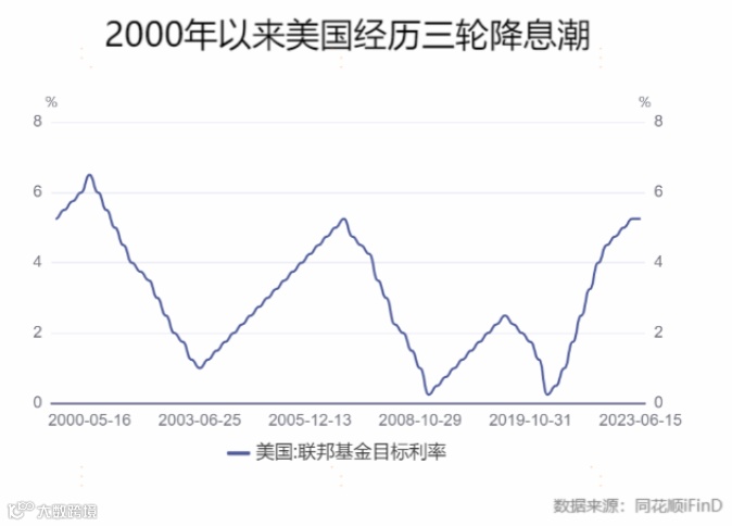 接下来我们一起来复盘一下,美国降息周期与人民币汇率的关系。自2000年以来,美联储共开启过三轮降息潮。特别是后两轮降息周期,人民币汇率都步入强势状态。