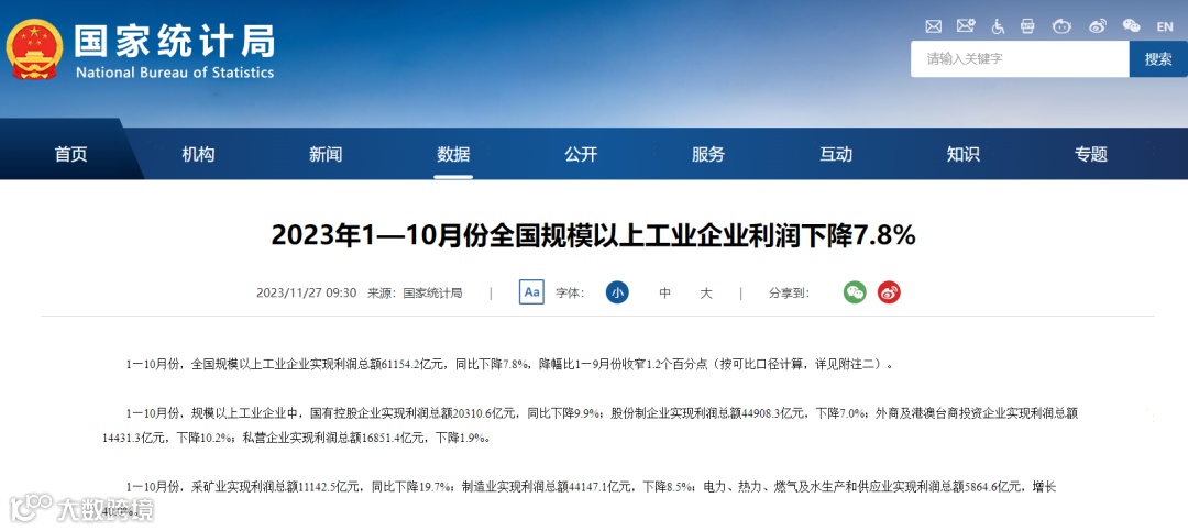 1、1-10月工业企业利润数据同比下降7.8%,10月延续正增长