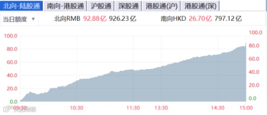北向资金全天净买入92.88亿元,连续10个交易日净买入,其中沪股通净买入43.16亿元,深股通净买入49.72亿元。北向资金本周净买入超250亿,1月以来净买入近900亿元。