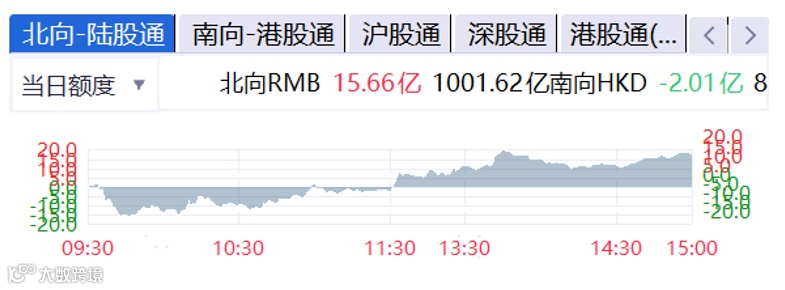 北向资金结束流出态势,全天净买入15.65亿元,其中沪股通净买入25.12亿元,深股通净卖出9.46亿元。。