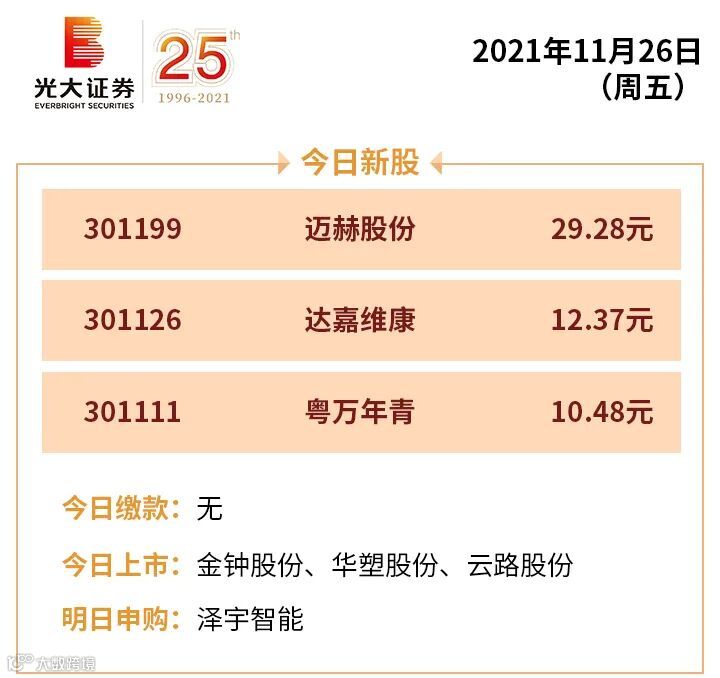 今日申购丨迈赫股份、达嘉维康、粤万年青