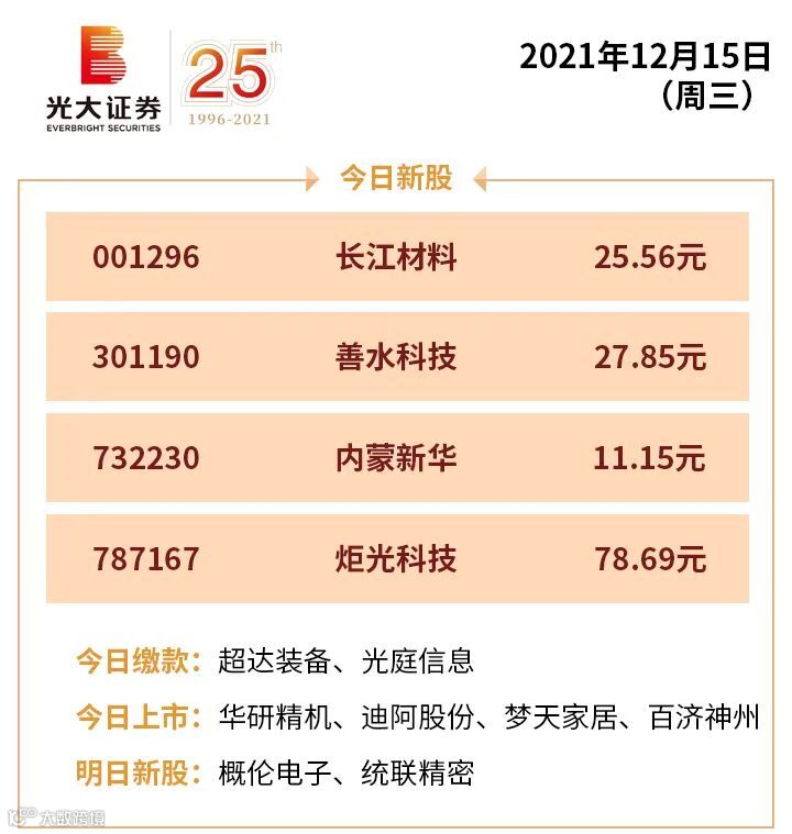 今日申购丨长江材料、善水科技、内蒙新华、炬光科技