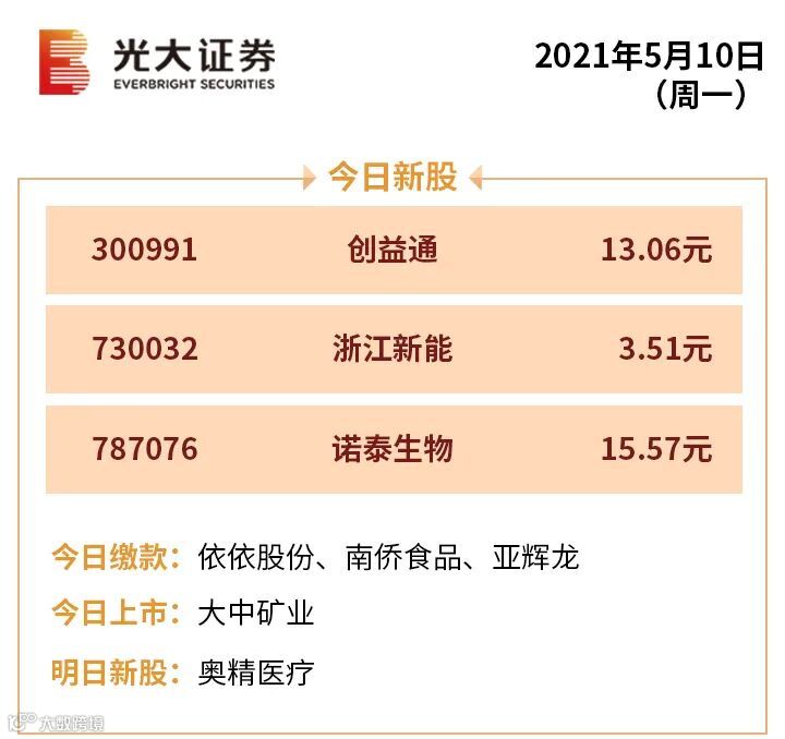 今日申购丨创益通、浙江新能、诺泰生物 光大证券微资讯