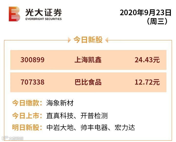 今日申购丨上海凯鑫、巴比食品 光大证券微资讯