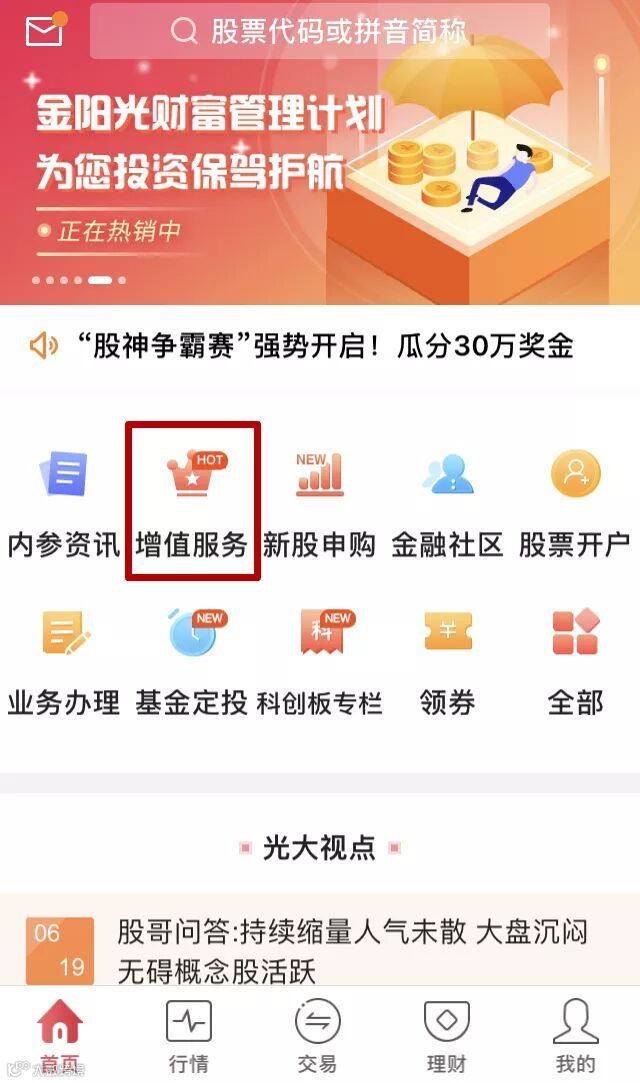 订阅路径:金阳光APP首页—增值服务—投资组合