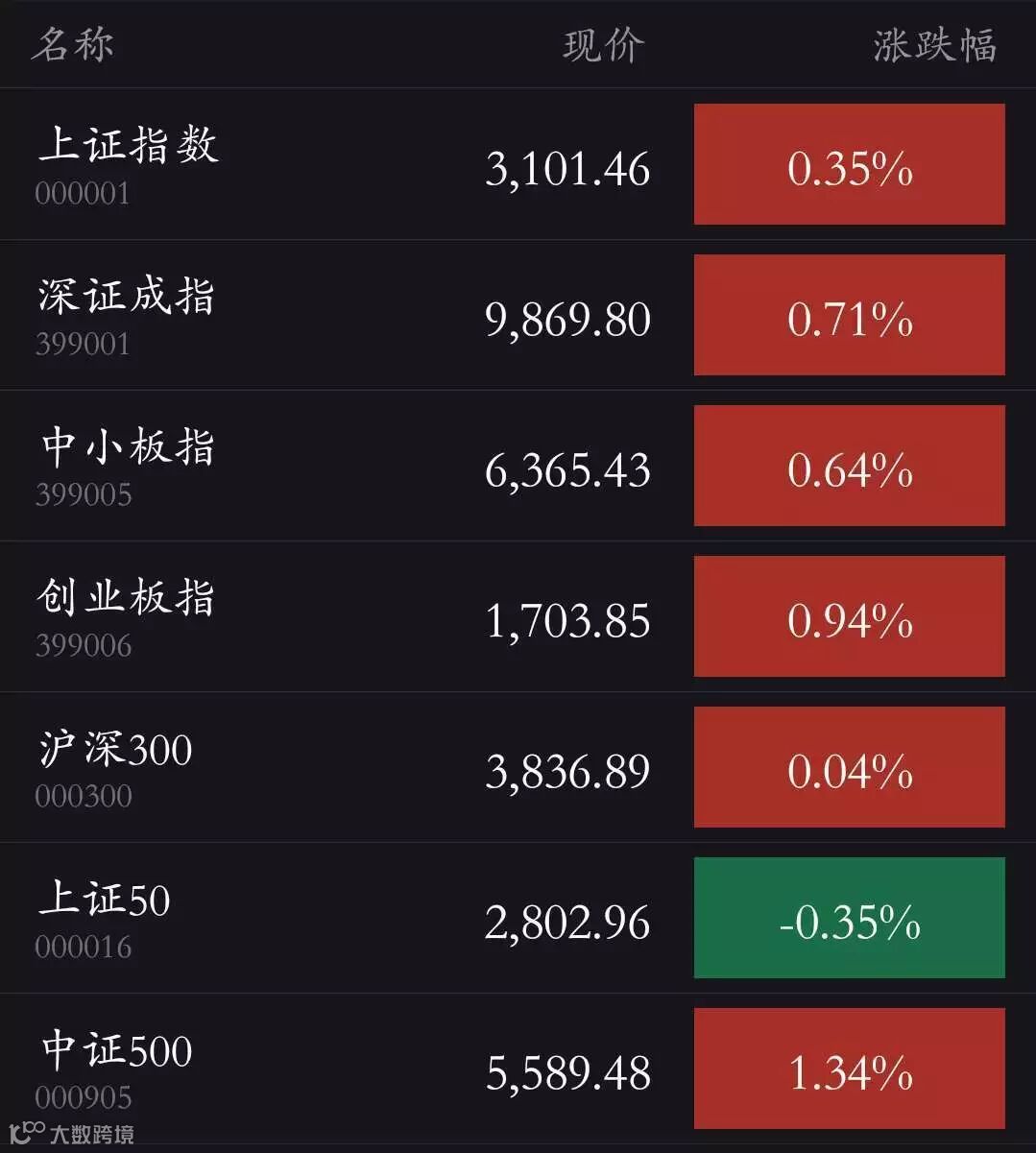 周四,沪深两市开盘后震荡上行,尾盘多只持续涨停的个股纷纷开板下挫,市场情绪受到一定影响,带动市场各大指数出现一波快速下行。最终,主要指数中除上证50跌0.35%外,其他均告上扬,具体看,创业板指、中小板指、万得全A、上证综指、沪深300分别涨0.95%、0.64%、0.61%、0.35%、0.04%。