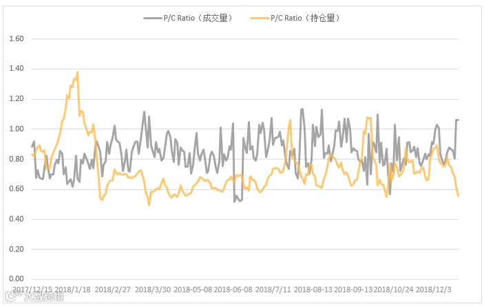 情绪指标成交量PCR值大幅上升,持仓量PCR值大幅下降。
