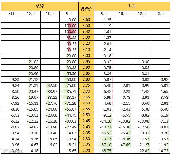 期权认购合约多数下跌,仅9月到期的几个虚值合约出现上涨;认沽合约中,9月合约多数上涨,其余月份合约多数下跌。
