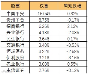 本周50指数权重前十的成分股悉数上涨,权重最大的中国平安上涨0.82%。