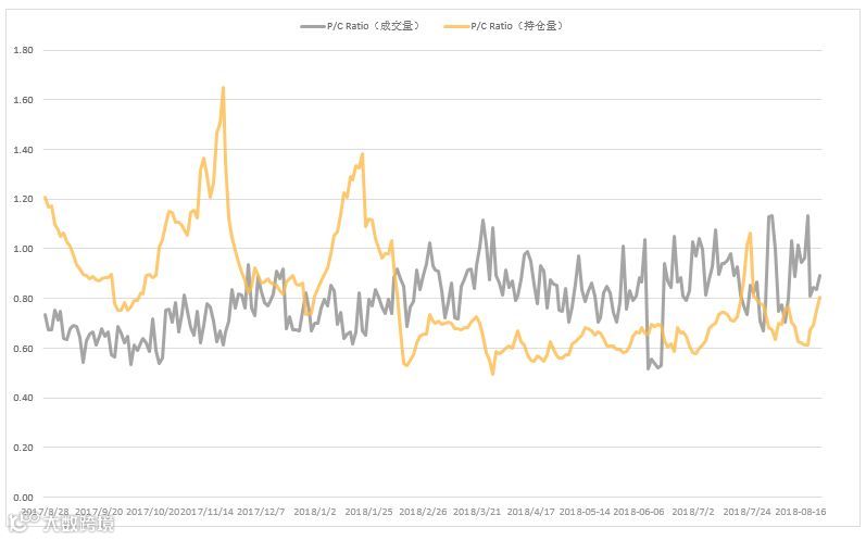 情绪指标成交量PCR小幅下降,同时持仓量PCR显著上升。