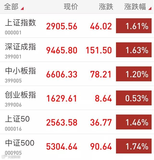 周二,受国常会释放宽松信号刺激,开盘后的第一个小时,沪深两市在周期板块中字头龙头公司的带动下快速拉升,随后的交易时间里在高位震荡休整,收盘时各主要指数均大幅告涨,具体看,上证综指、万得全A、沪深300、上证50、中小板指、创业板指分别涨1.61%、1.60%、1.59%、1.46%、1.20%、0.53%。两市放量成交4928.52亿元,创逾3个月以来新高。行业方面,周期板块继续领涨,建筑、建材、钢铁、煤炭等板块涨幅位居前列;银行、电力、军工等板块则表现较弱,涨幅较小。