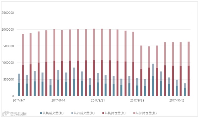 上证50ETF期权日均成交62.86万张,其中,认购合约39.05万张,认沽合约23.81万张;日均持仓量为159.84万张,其中,认购合约89.89万张,认沽合约69.95万张。