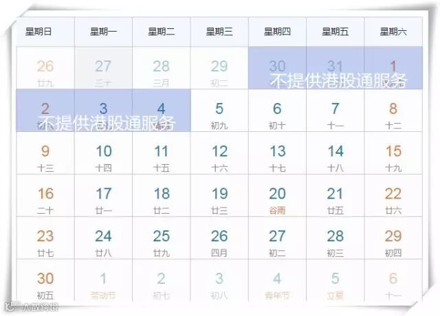 3月30日(星期四)至4月4日(星期二)不提供港股通服务,4月5日(星期三)起照常开通港股通服务。