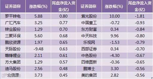 个股尾盘资金流向数据显示,7月21日7股尾盘净流入资金超过0.6亿元,罗平锌电尾盘净流入0.80亿元居首。尾盘资金流出方面,紫光股份最多,为1.81亿元。